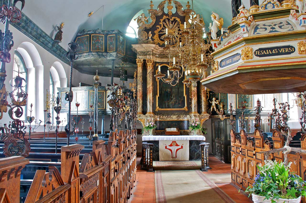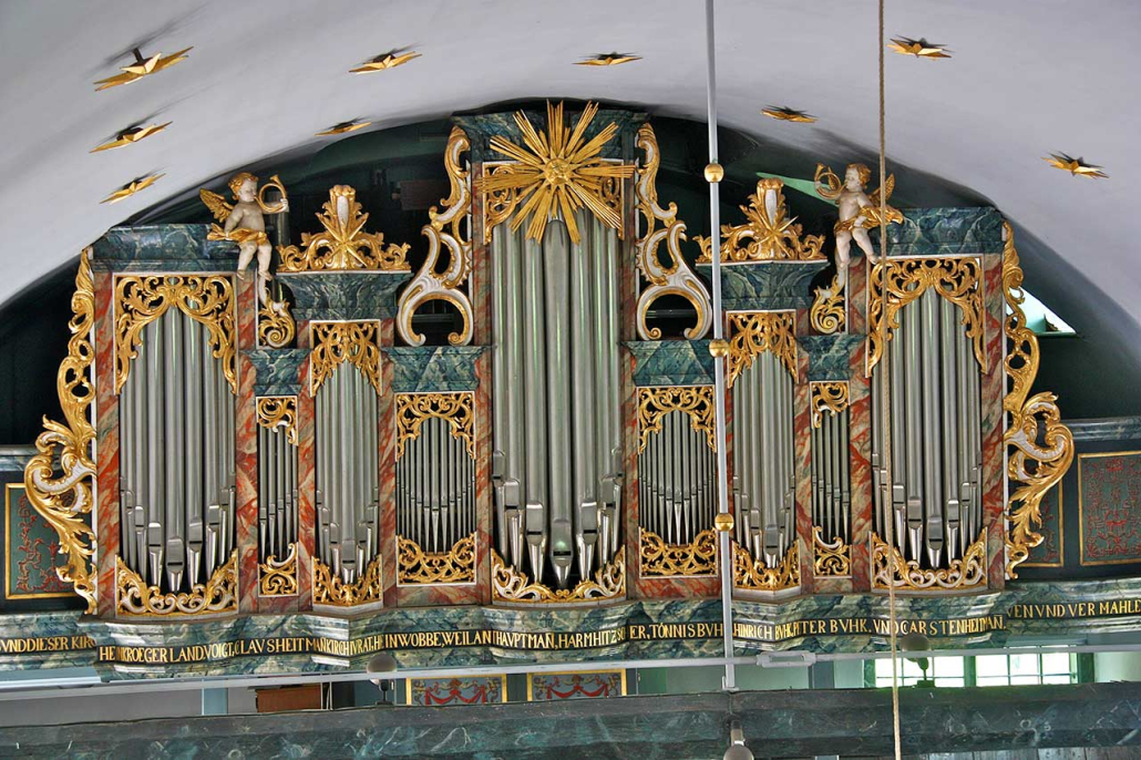 Nachdem die Kirche 1747 bei einem Unwetter eingestürzt war, wurde sie von 1748 bis 1752 wieder aufgebaut. Dieser neue Aufbau bestimmt bis heute das Erscheinungsbild der Kirche als Saalkirche mit halbrundem Chor. Nach dem Wiederaufbau erhielt die Kirche in den Jahren 1750 bis 1752 eine von Johann Dietrich Busch gebaute Barockorgel. Das heutige, 1963 von der Firma Emanuel Kemper & Sohn gebaute Werk befindet sich immer noch hinter dem Prospekt aus dem 18. Jahrhundert. Die Orgel wurde 1999 vollständig restauriert.
